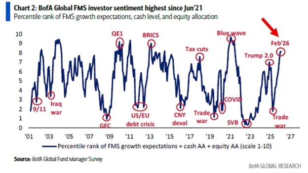 During the century, market sentiment has only been this positive a few times. Is this level of euphoria sustainable, and what will cause it to reverse? Fund managers digest all data and change their opinions rapidly.