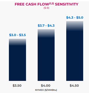 EQT forecasts $3.5 billion in 2026 free cash flow at recent strip pricing. Here is EQT’s forecasted free cash flow sensitivity guidance for 2026: