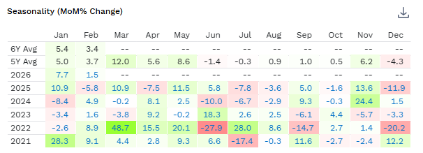 We will note that over the last 5 years, EQT has the highest average return in March, with April and May also having above average return profiles.