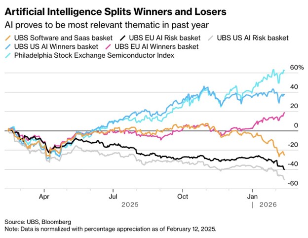SaaS firms were once the darlings of Wall Street. However, today, they are major laggards across public markets as their moat evaporates in front of their eyes. AI disruptions are causing analysts and investors to reprice dated SaaS models fast. This decrease in the stock prices of SaaS companies is due to lower implied growth rates, causing multiple compressions.