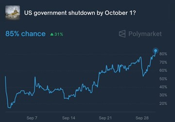As of Tuesday, at noon, just a few hours before the government could shut down, Polymarket had the odds of a shutdown at 80%: