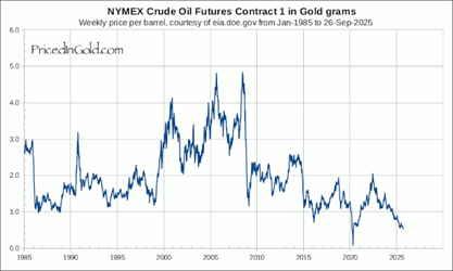 Oil is currently the cheapest it has been in over 70 years when denominated in gold. The only exception over the last 70 years came during the COVID-19 crash when oil prices plunged due to global lockdowns. For those who have a great memory, oil temporarily traded at a negative price in the spring of 2020.